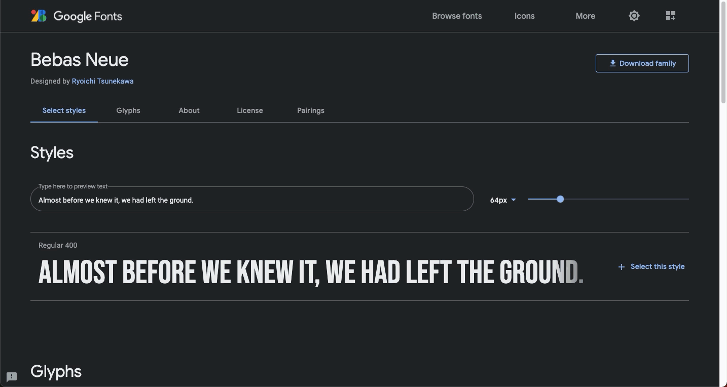 - On the Google Fonts page, copy the import font code between the <span> and</span> container and paste it over the import font line from our sample code.