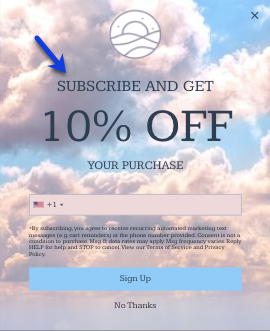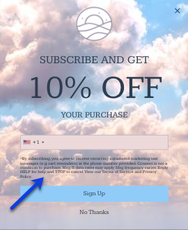 When collecting subscribers, the TCPA requires you to include necessary compliance language that informs visitors that they are opting into SMS messaging from your store.